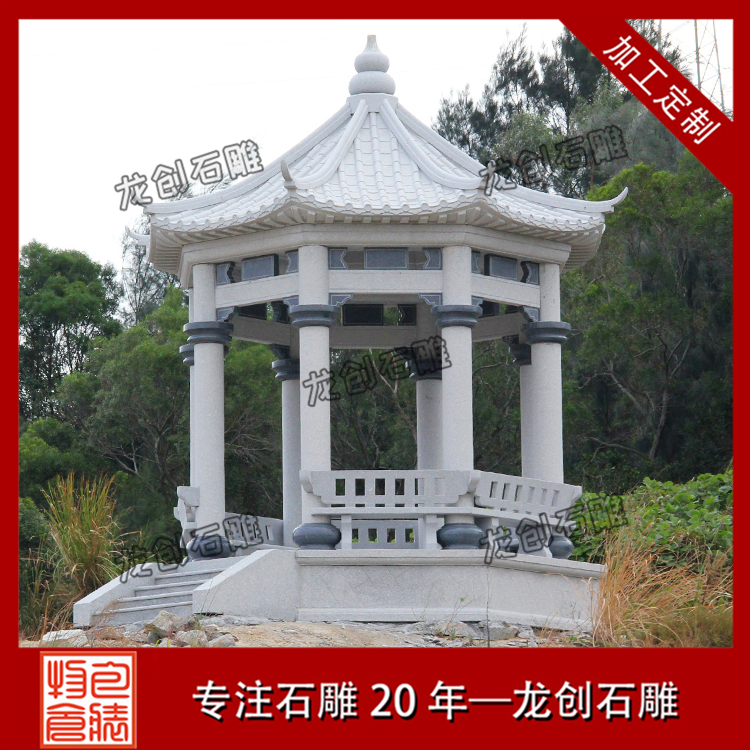 園林石雕涼亭往往設(shè)計成為整個園林或者某一范圍的視覺中心。因為中心地段是容易引起游客視覺注意的位置,有利于園林石涼亭發(fā)揮其點綴景色、點明主題的作用。
