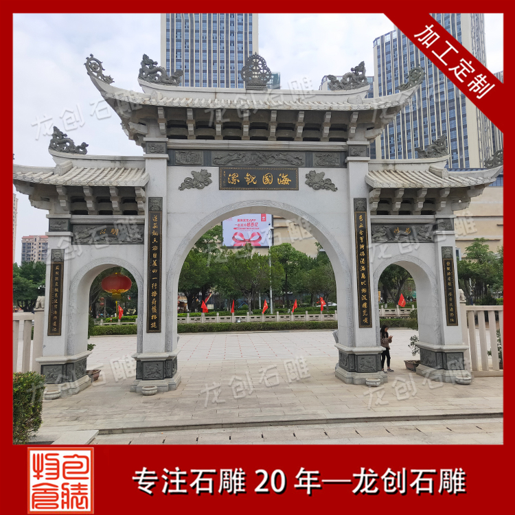 石牌樓制作所采用的原材料是決定石牌樓價格的主要因素。市面上適合雕刻石牌樓的原材料有花崗巖、青石、五蓮紅、芝麻白、芝麻灰等。一般石牌樓雕刻采用青石和花崗巖的比較多,這種石料本身質(zhì)地好,而且花色紋路選擇多,加上這種石材價格比較實惠,適合在不同的場合中使用。而五蓮紅和花崗巖這兩種石材價格稍微高一些,石牌樓根據(jù)用的材料質(zhì)地不同以及原材料的數(shù)量不同,石牌樓價格有很大的變化。