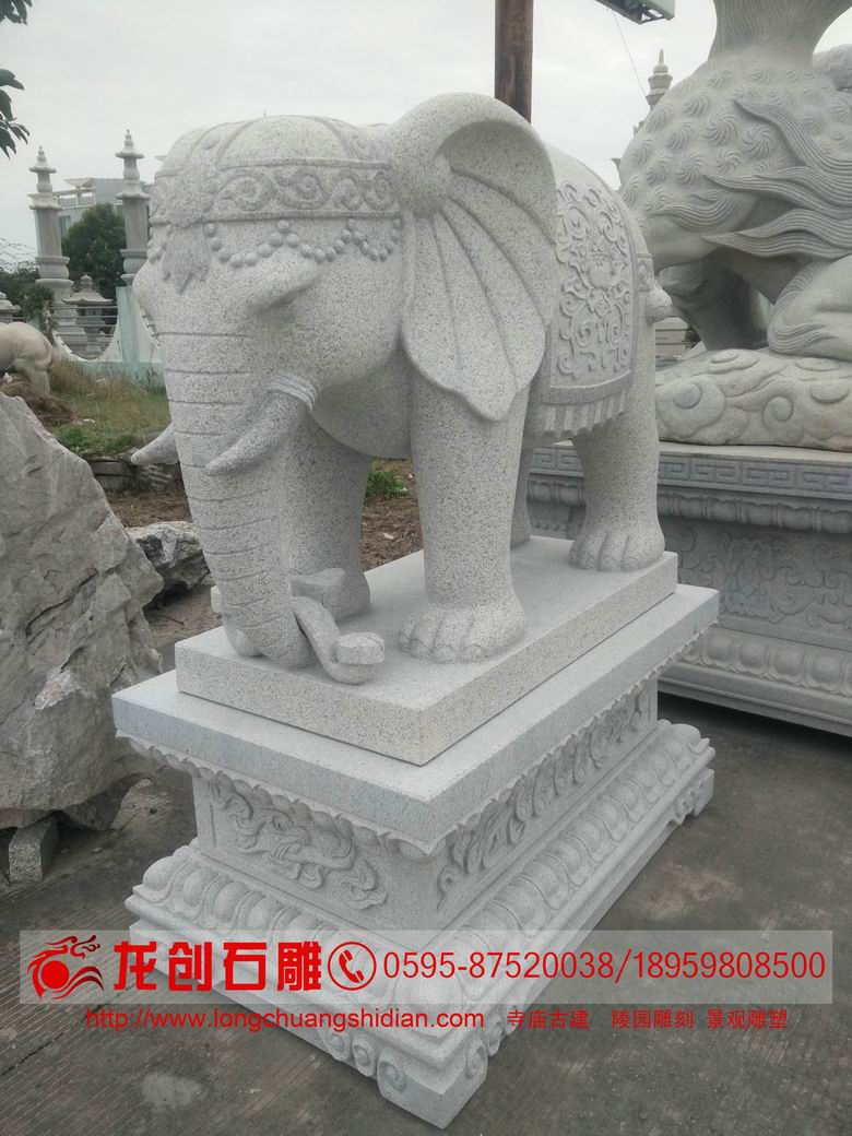 大象是智慧、力量、團(tuán)結(jié)的象征,它們屬群居動(dòng)物,社會(huì)團(tuán)體結(jié)構(gòu)以母象及幼象為主.代表著家庭,單位,團(tuán)體,黨派和社會(huì)的團(tuán)結(jié),融洽與和諧。石雕大象也是吉祥如意的意思,吉祥如意就是吉象如意,心想事成的含義,大象是一個(gè)國(guó)家的神圣的象征,也是觀音的坐騎,與之隨身隨行,那當(dāng)然也是起到去災(zāi)辟邪,保佑自己,佑護(hù)他人的含義。大象被人們視為招財(cái)?shù)纳瘾F,因?yàn)槭笤谖逍兄袑俳?而五行之中水為財(cái),正合五行金生水之道。故人們喜歡在家中、辦公場(chǎng)所、商鋪、公園等地?cái)[放石雕大象。