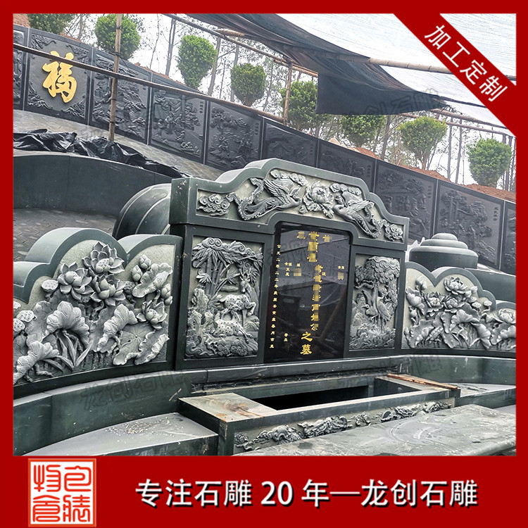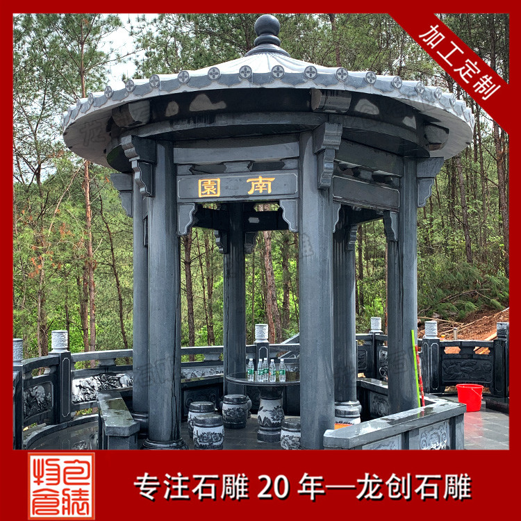 此陵園石雕涼亭采用的是青石雕刻的單層石亭子,石雕欄桿也是采用青石材質(zhì)的石欄桿,欄板上面雕刻了花草圖案,看上去特別的精美,墓碑周圍的石材浮雕是二十四孝圖案,其他地方的石材浮雕圖案是花草鳥獸,整個陵園通過這些石雕制品的裝飾,顯得很有檔次。