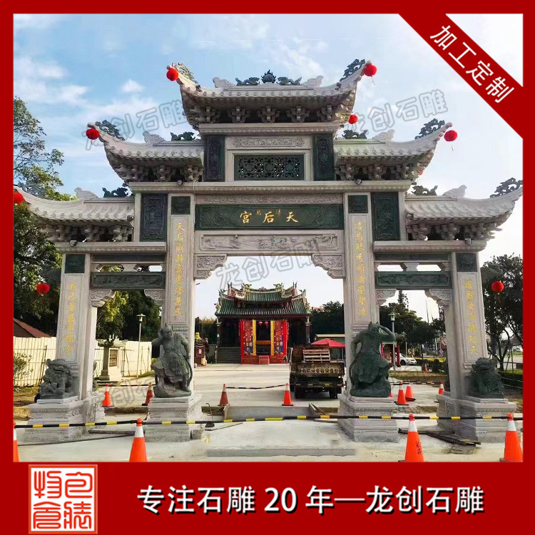 以上分享的石牌樓是中式典型的三門四柱石牌樓造型,作品結(jié)構(gòu)緊密,設(shè)計(jì)精巧,款式古樸,是古建景區(qū),宗教寺廟,村莊入口常用的景觀擺件。惠安龍創(chuàng)石雕支持定制各種樣式的石牌樓、石牌坊,專注石雕20年,匠心制作,自有礦山,價(jià)格實(shí)惠。