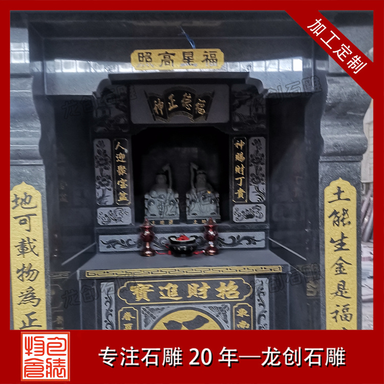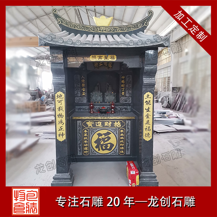 在浙江寧波的金蓮寺改造項(xiàng)目中,一座精美的石雕土地廟成為點(diǎn)睛之筆。這座土地廟采用優(yōu)質(zhì)芝麻黑654石材,質(zhì)地堅(jiān)硬,色澤溫潤。廟身的雕刻工藝精湛絕倫,高2.9米,寬1.36米,深度1.63米,整體造型古樸典雅,遵循傳統(tǒng)廟宇建筑風(fēng)格,飛檐斗拱線條流暢,比例協(xié)調(diào);墻體厚實(shí),雕紋精美,線條流暢。其內(nèi)部空間布局合理,土地神像安置其中,更顯威嚴(yán)。
