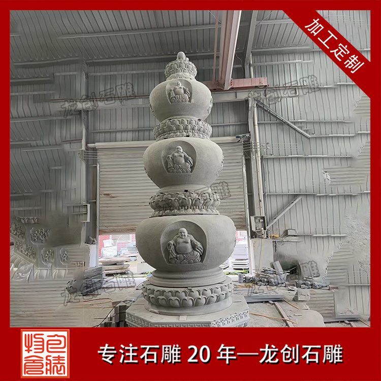此塔選用質(zhì)地堅硬、耐風化的花崗巖材質(zhì),確保能歷經(jīng)歲月洗禮而不損。雕刻工藝精湛,綜合運用圓雕、浮雕。塔身主體的彌勒佛像采用深浮雕,立體呈現(xiàn)彌勒大肚便便、笑容可掬的形象,面部表情細膩,神態(tài)慈祥。塔身上的蓮花等裝飾圖案則運用深淺浮雕,線條流暢,層次分明。