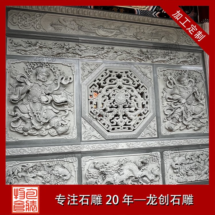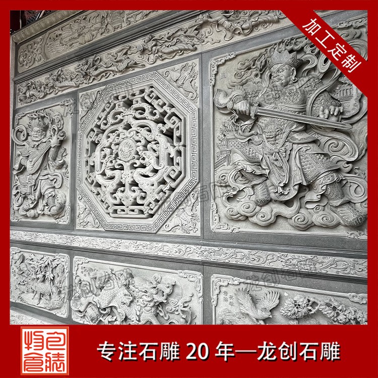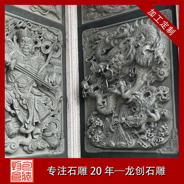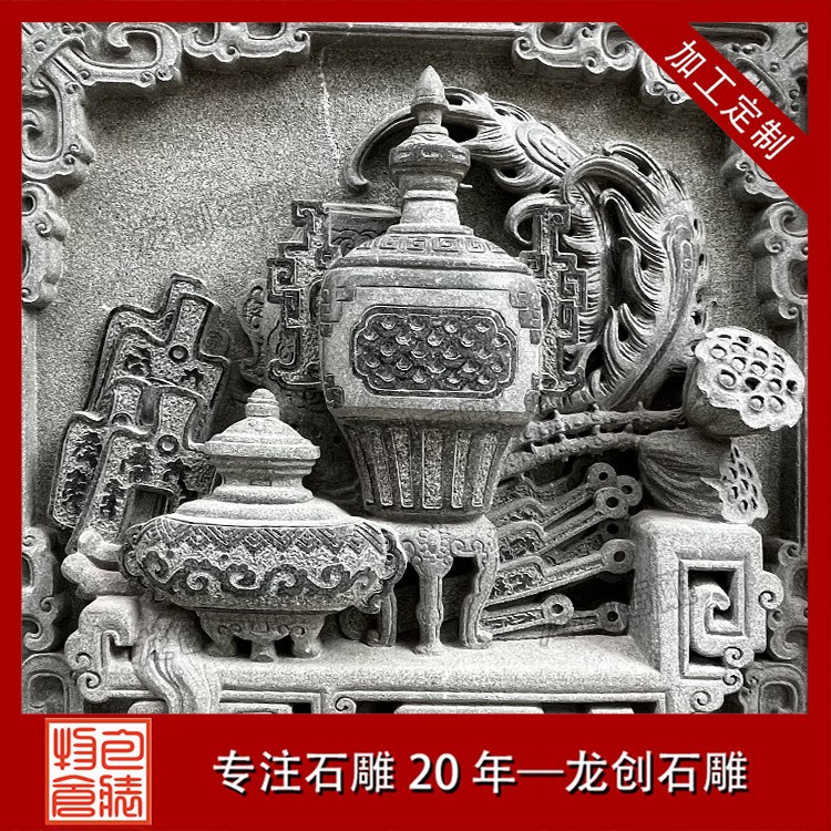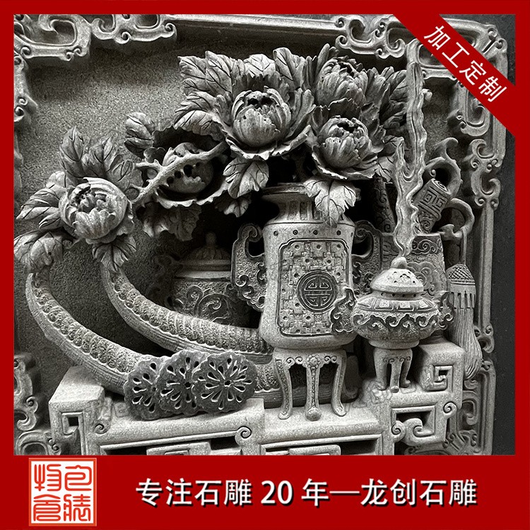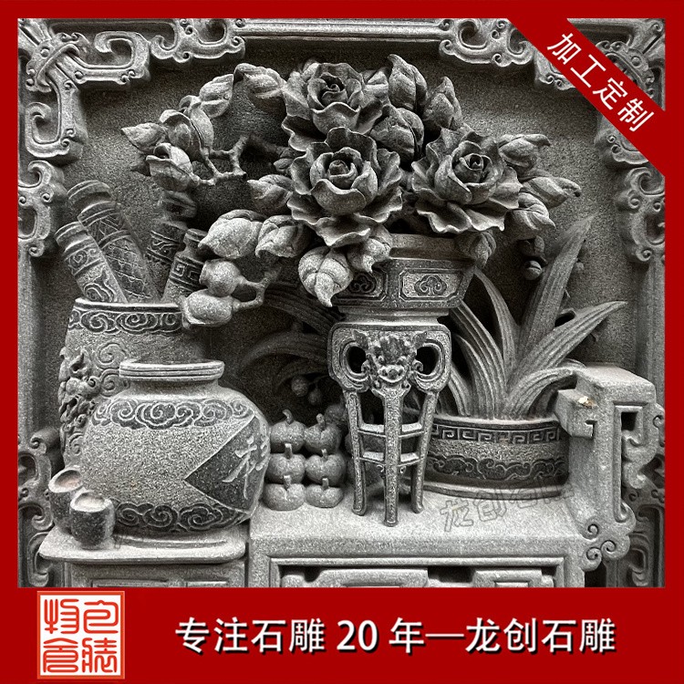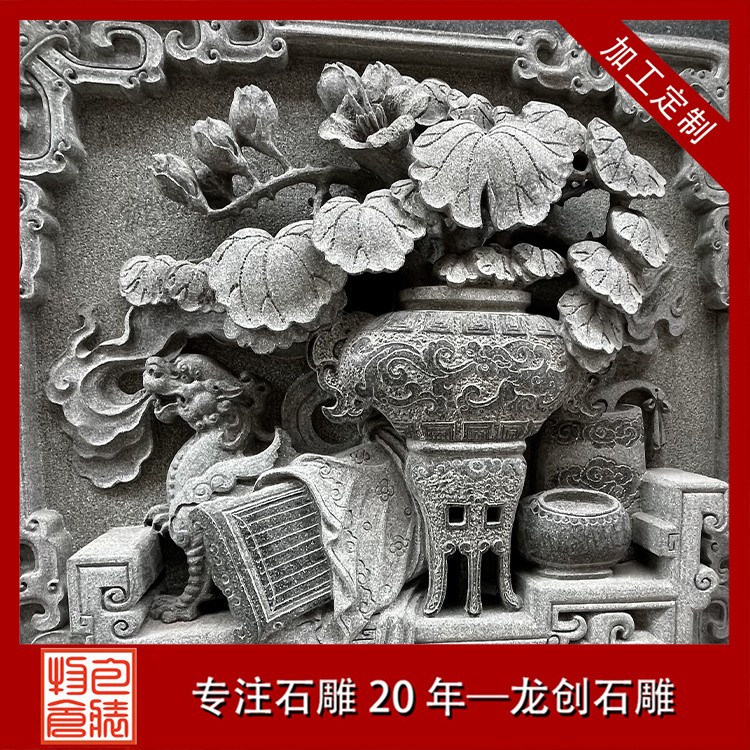 在工藝技法上,這類浮雕注重平面構(gòu)圖向立體空間的轉(zhuǎn)換。采用寫實與寫意相結(jié)合的表現(xiàn)手法,花朵枝葉的形態(tài)力求準(zhǔn)確,而整體布局則講究虛實相生。雕刻時通常分三個層次處理:遠景層淺刻勾勒,中景層適度凸起,近景層重點刻畫。特別是禽鳥的喙眼、花瓣的翻卷、葉片的脈絡(luò)等關(guān)鍵部位,通過精細的刀工呈現(xiàn)出生動的細節(jié)質(zhì)感,使堅硬的青石呈現(xiàn)出柔美的自然氣息。