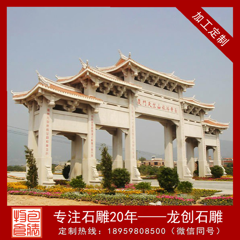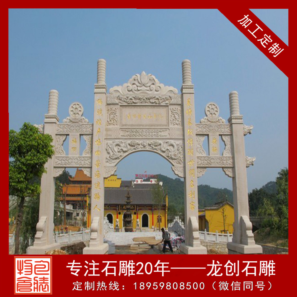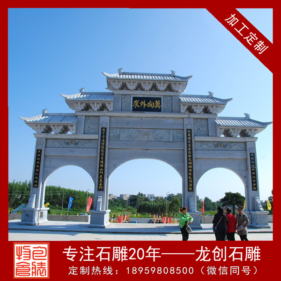 石雕山門是漢族傳統(tǒng)建筑中非常重要的一種建筑類型,用花崗巖修建的石雕山門,是封建社會為表彰功勛、科第、德政以及忠孝節(jié)義所立的建筑物。也有一些宮觀寺廟以山門作為山門的,還有的是用來標明地名的。又稱牌樓,為門洞式紀念性建筑物,宣揚封建禮教,標榜功德。建筑是凝固的歷史。