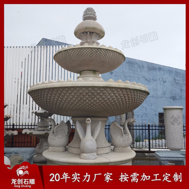 花崗巖噴泉水缽常見的就屬黃銹石噴泉和黃金麻噴泉居多,兩種石材均屬于黃顏色花崗巖,但是在石材色澤上有明顯不同,黃銹石石材有明顯的繡點,有輕微的色差,而黃金麻色澤則偏黃顏色均勻。花崗巖石材質地堅硬耐腐蝕風化,可塑性強,這種石材是做室外噴泉雕塑的。除此之外,芝麻灰、芝麻白、芝麻黑等花崗巖均是做噴泉的尚好材質。