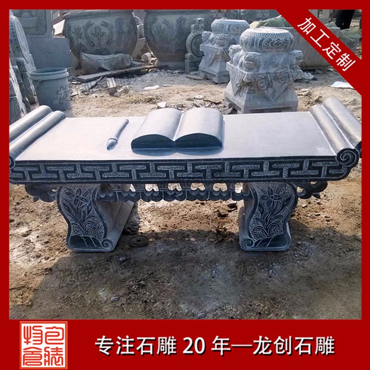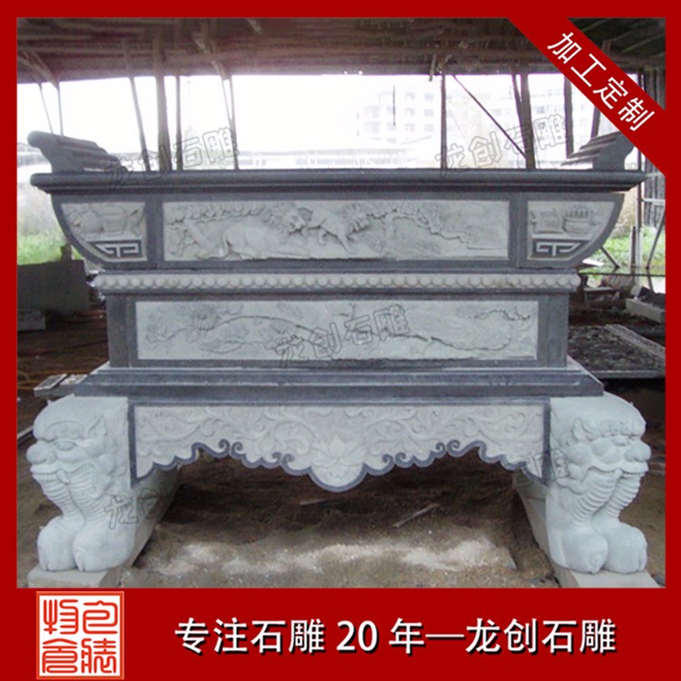 石雕供桌常見(jiàn)款式為長(zhǎng)方形,石頭材質(zhì)屬于青石,面中間是一精致的神臺(tái)供桌,雕刻一龍王看廟,高度約與方桌相等。祭祀時(shí)常供設(shè)香爐、蠟竿和擺放供品,此為石頭所制,故名石供桌(神臺(tái))。供桌常見(jiàn)幾種地方擺放,廳堂供桌、佛堂供桌、寺廟供桌、神臺(tái)供桌等,與其配套的有香爐、石鼎。龍創(chuàng)石雕有限公司為石雕供桌定做廠家、青石供桌生產(chǎn)加工廠家、漢白玉供桌生產(chǎn)加工廠家,提供各式石材供桌加工,青石九龍供桌、專業(yè)生產(chǎn)青石供桌、花崗巖供桌、大理石供桌、青石供桌批發(fā)、供桌生產(chǎn)加工等等。