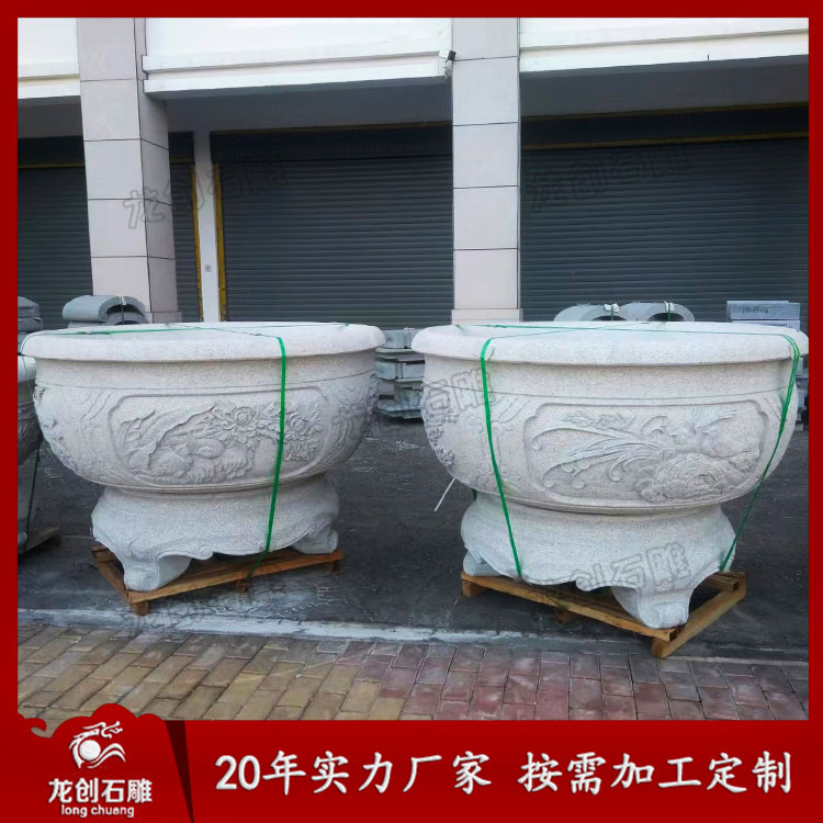 現(xiàn)在我們在小區(qū)、別墅、公園廣場等場所使用的石花盆,大都會選擇花崗巖材質(zhì)的,這是為什么呢?只要是因為花崗巖材質(zhì)堅固,品種顏色也很多,重要的一點是價格很實惠,花崗巖石雕花盆又分為黃銹石石雕花盆花缽、白麻石雕花盆、芝麻白石雕花盆、芝麻黑石雕花盆、黃金麻石雕花盆等。這些花崗巖材質(zhì)都很耐磨損,適用于室內(nèi)外。