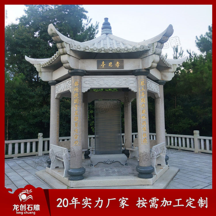 石涼亭也叫石亭子,是提供人們在園林或者是景區(qū)中觀賞風(fēng)景與休憩的場所,加工石涼亭在選擇石材時,有的石材顏色比較單一可以通過雕刻的方式來彌補顏色帶來的不足,或者是通過雕刻的圖案來代表人們美好的一種祝愿。