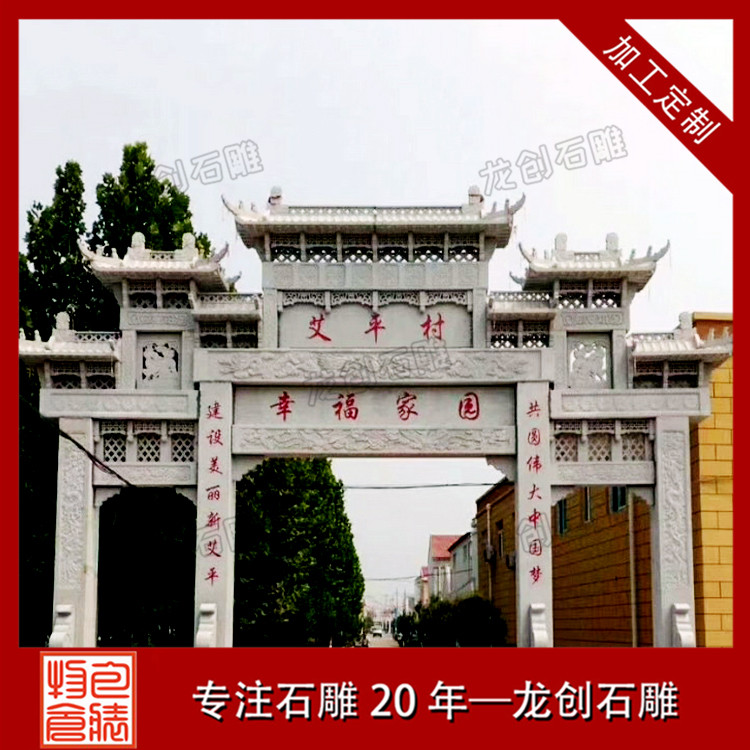 村頭石牌樓作為提高鄉(xiāng)村品牌形象的關(guān)鍵工程建筑,鄉(xiāng)村安裝的村子石牌樓村牌樓通常全是以簡(jiǎn)易大氣的主導(dǎo),例如某些這門(mén)1樓或3樓或三門(mén)3樓式的牌樓,由于這種牌樓的工程造價(jià)成本費(fèi)也不高,適合鄉(xiāng)村石牌樓的手工雕刻安裝,這都是許多鄉(xiāng)村能夠接納的緣故。手工雕刻精致的村頭石牌樓,從側(cè)邊體現(xiàn)出了,大家的人生目標(biāo),對(duì)家中祈禱安全、期盼人生道路榮華富貴、祈禱身體健康的吉祥如意意識(shí)。