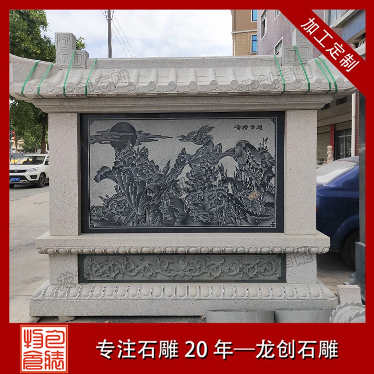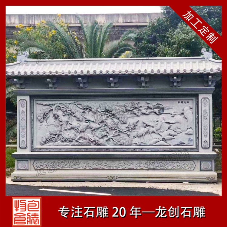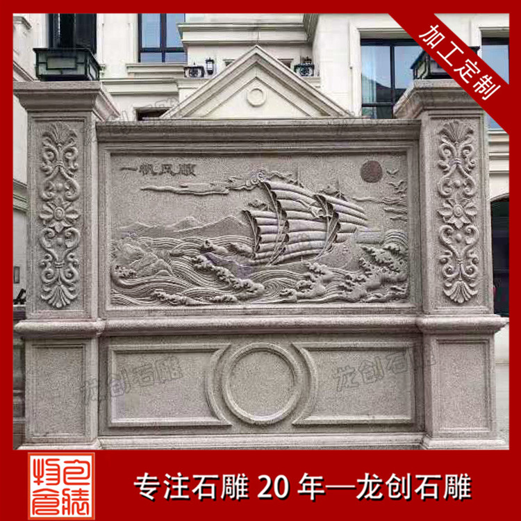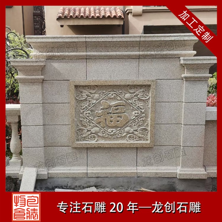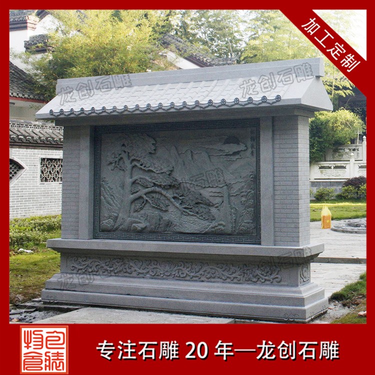 石材浮雕照壁就是用石材雕刻的一種墻面,也稱石雕影墻、石雕照墻,是古代寺廟、宮殿、官府衙門(mén)和深宅大院前的一種建筑,即門(mén)外正對(duì)大門(mén)以作屏障作用的墻壁。石雕照墻定制,選惠安龍創(chuàng)石雕。