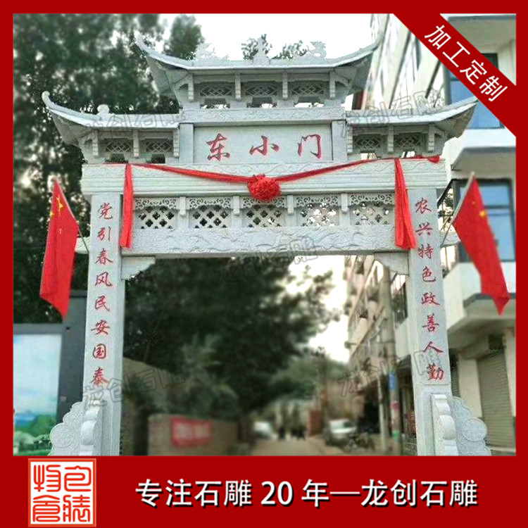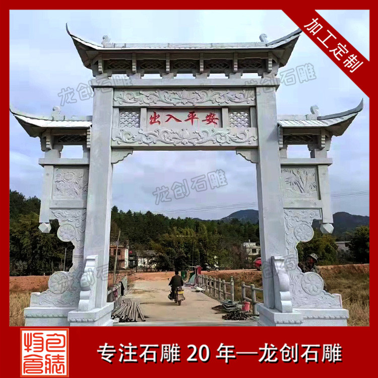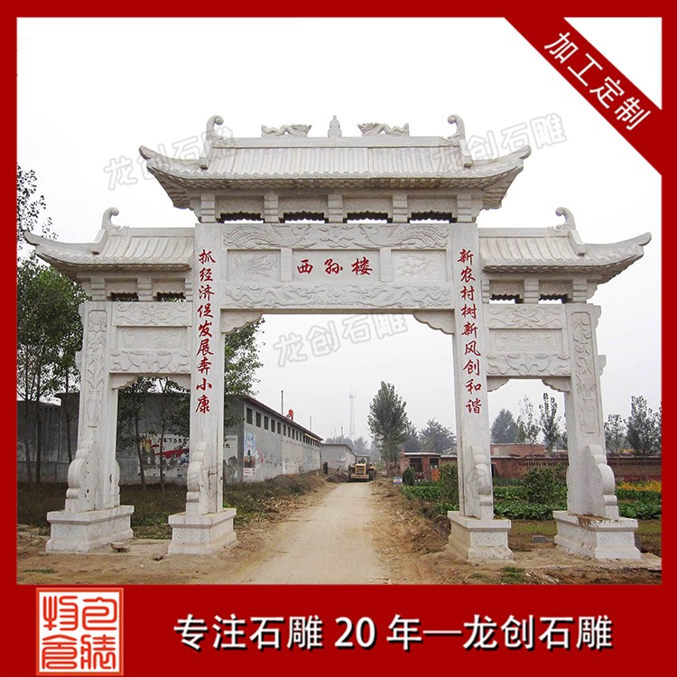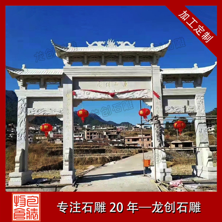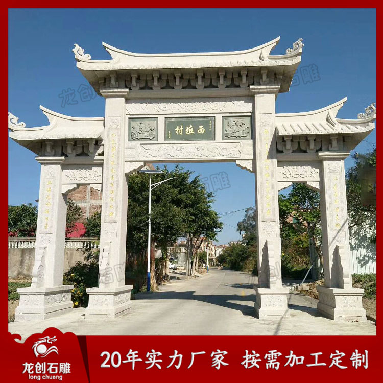 石雕牌坊是我國傳統(tǒng)古建筑的一部分,村莊石雕牌坊也稱村口石雕牌坊、農村石雕牌坊,一般是建在村莊的入口處,村莊石雕牌坊是一種仿古建筑,古樸大方,具有很高的歷史文化價值和觀賞價值。