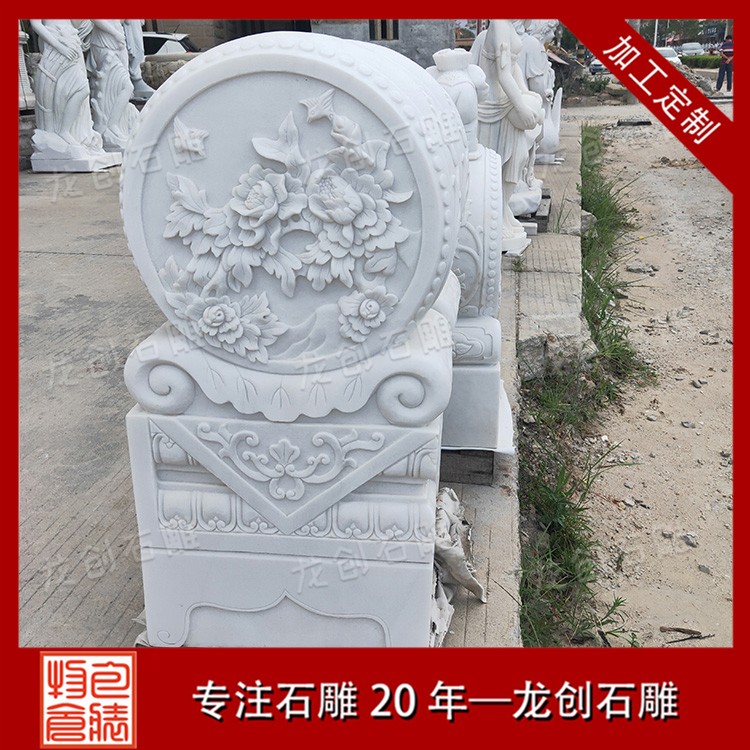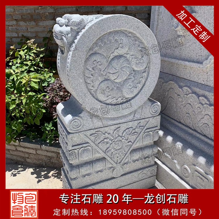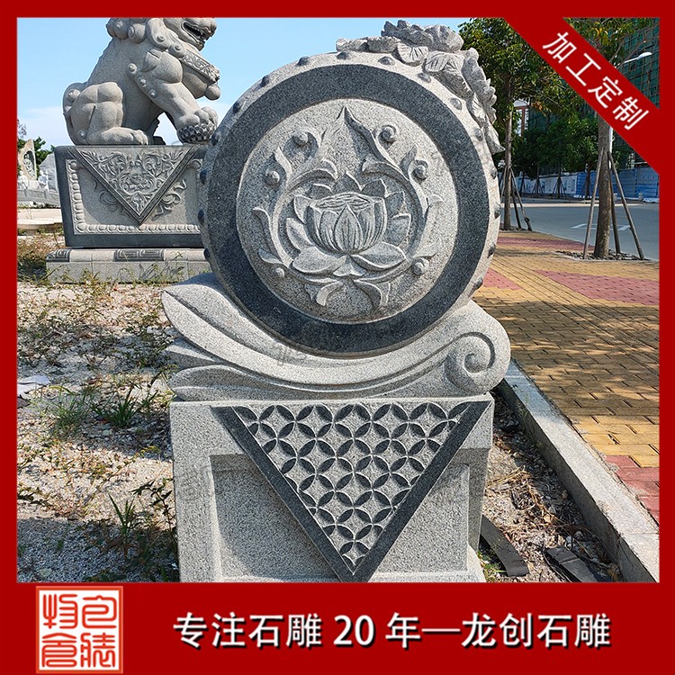 3.浮雕與線雕結(jié)合:在抱鼓石的雕刻過程中,浮雕和線雕技藝常被結(jié)合使用。浮雕通過使形象從背景中凸出來,增強(qiáng)畫面的立體感和空間感。在抱鼓石的兩側(cè),常采用浮雕技藝刻畫各種圖案和紋飾,如角蓮、麒麟臥松等。而線雕則主要通過刻線來展現(xiàn)細(xì)節(jié)和紋理,使石雕更加細(xì)膩和美觀。在細(xì)加工階段,雕刻師傅會根據(jù)設(shè)計(jì)稿和石材的特性,靈活運(yùn)用這兩種技藝,使抱鼓石既具有藝術(shù)美感,又符合實(shí)用要求。