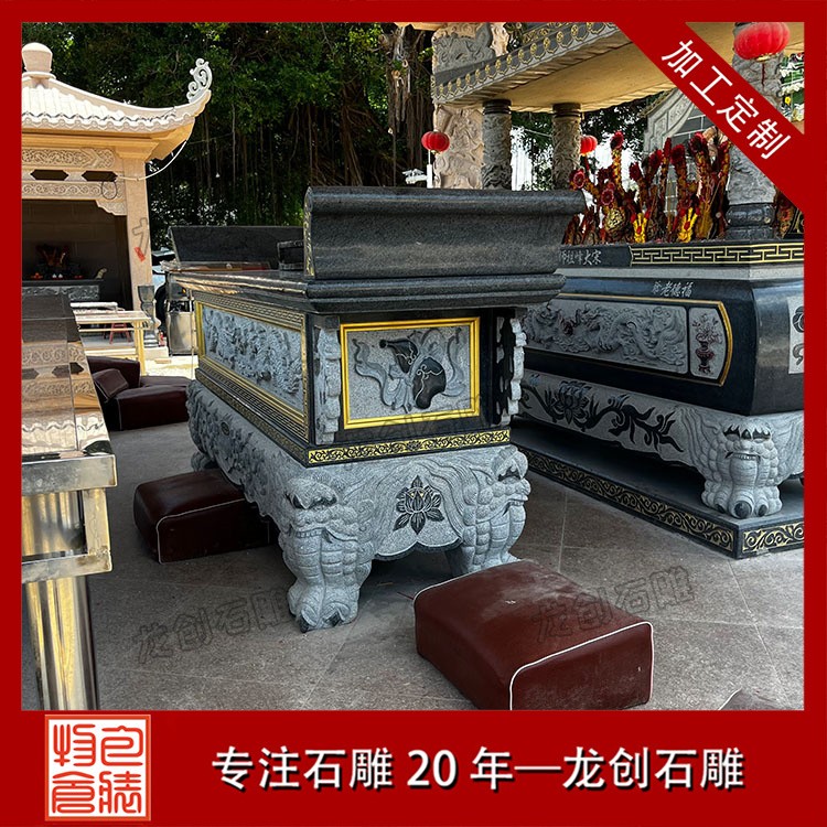 我廠專注石雕工藝多年,提供各類定制化供桌產(chǎn)品,選用優(yōu)質(zhì)花崗巖、青石等天然石材,結(jié)合傳統(tǒng)工藝與現(xiàn)代雕刻技術(shù),確保每一件作品既莊重大氣,又富文化底蘊(yùn)。