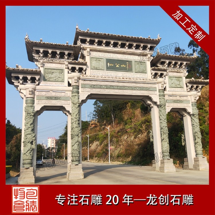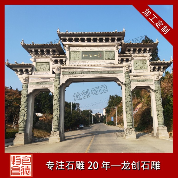 在景區(qū),往往首先映入眼簾的便是一座氣派的石牌坊。在這里,石牌坊扮演的是 “門(mén)面擔(dān)當(dāng)” 的角色 。它的首要功能是標(biāo)識(shí)和引導(dǎo)。牌坊上的匾額題字,點(diǎn)明了景區(qū)的名字和意境,告訴游人“由此進(jìn)入,別有洞天”。更重要的是,它是風(fēng)景的序言。在設(shè)計(jì)上,景區(qū)牌坊的雕刻主題會(huì)與內(nèi)部景致相呼應(yīng)。