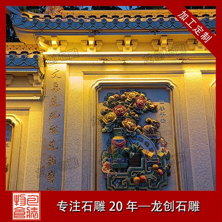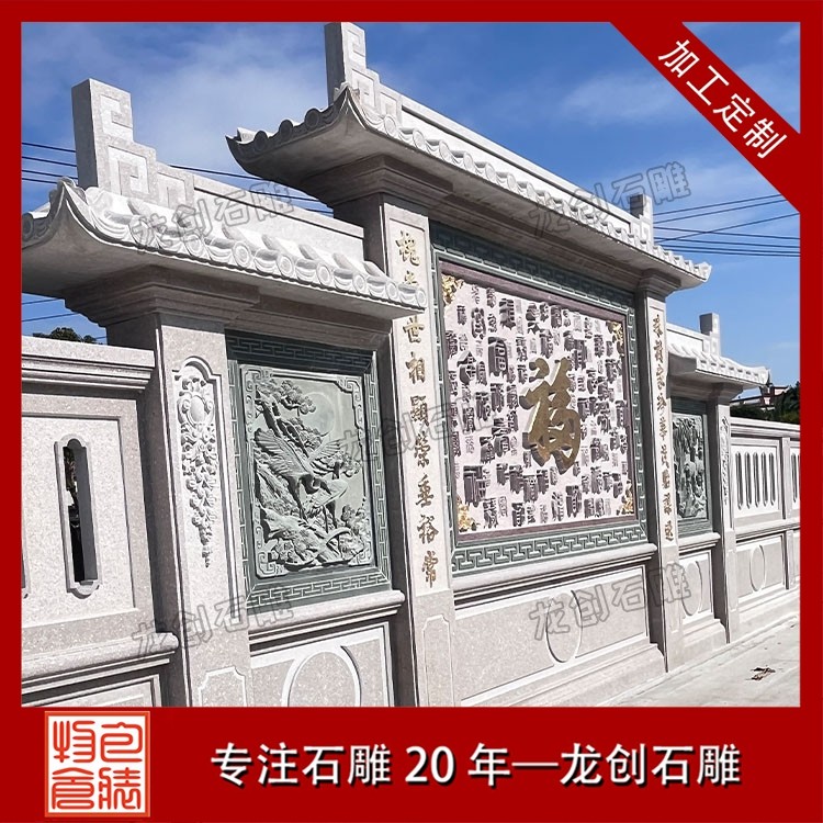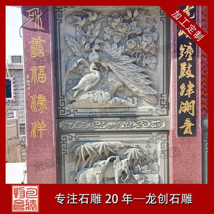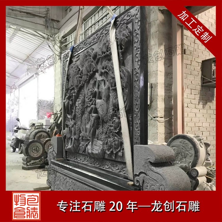 其二,意境含蓄內(nèi)斂,彰顯中式人文情懷。中式庭院講究“藏而不露”,石雕照壁浮雕恰好契合這一美學(xué)理念,既巧妙遮擋院內(nèi)景致,避免“開(kāi)門(mén)見(jiàn)山”的直白,又以浮雕紋樣傳遞美好期許——龍鳳呈祥彰顯尊貴,松鶴延年寄托福壽,鹿竹同春寓意平安,山水花鳥(niǎo)展現(xiàn)自然之美,讓冰冷的石材承載起溫暖的文化內(nèi)涵與家族期盼。