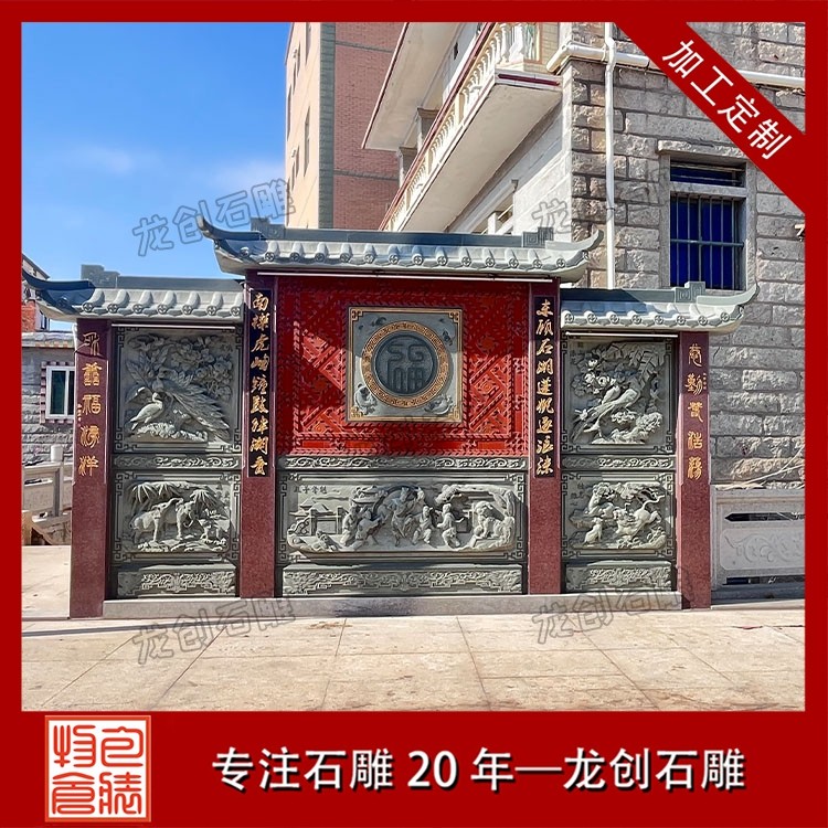 其一,視覺(jué)層次感突出,打造庭院的驚艷。作為庭院大門(mén)口的視覺(jué)焦點(diǎn),石雕照壁浮雕以立體雕刻工藝打破平面墻面的單調(diào),線條流暢的浮雕紋樣與天然石材的質(zhì)感相得益彰,無(wú)論是簡(jiǎn)約大氣的線條設(shè)計(jì),還是繁復(fù)精美的吉祥圖案,都能瞬間提升庭院大門(mén)口的整體檔次,讓到訪者直觀感受到主人的審美格調(diào)與家族底蘊(yùn)。