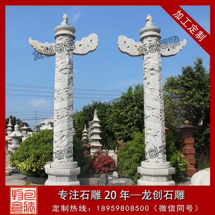 北京首都的華表也歸屬于龍柱種類的一種,不僅是美觀大氣,也是我們中華民族的象征精神,而且更有外國人對于我們這樣的建筑贊嘆不已。龍做為華夏兒女非常崇敬的動物瑞獸,其文化藝術(shù)、觀念、實際意義源遠(yuǎn)流長。當(dāng)今,被工匠雕刻其形在石柱上,更增加了它的氣魄和風(fēng)韻。