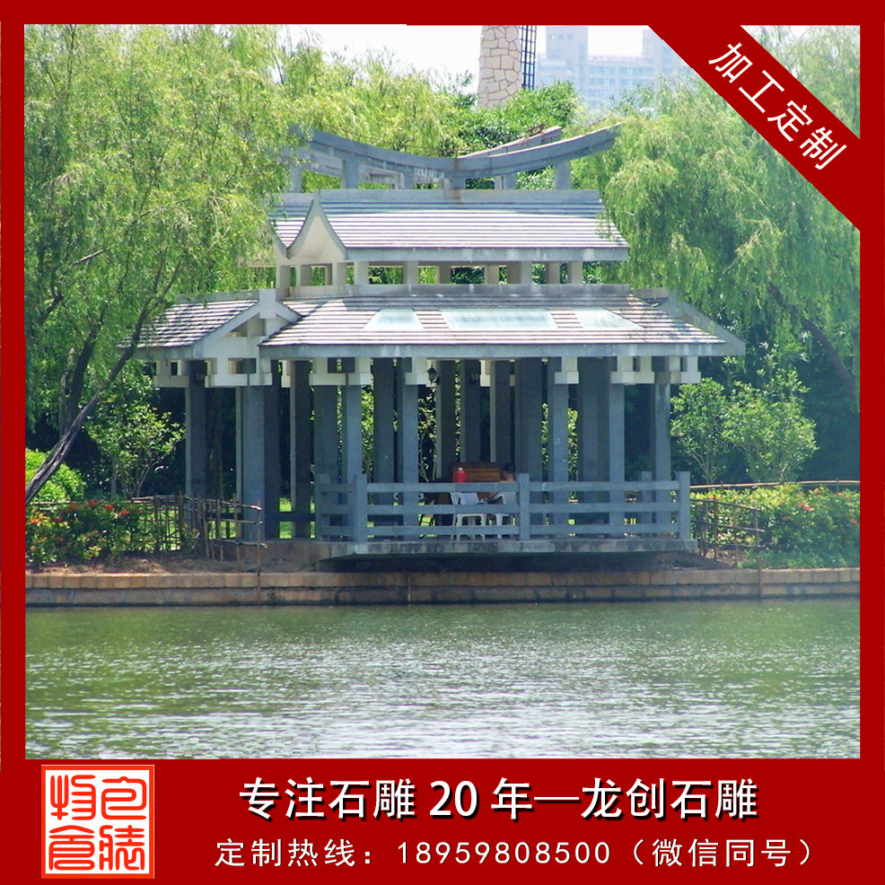 石亭常建在花園或公園中的開敞的納石亭榭或亭子,常由柱子支承屋頂建造。石亭以石建石亭,在我國(guó)也相當(dāng)普遍,現(xiàn)行最早的石亭,就是石亭。早期的石亭大多模仿木結(jié)構(gòu)的做法,斗拱、月梁、明、雀替、角梁等等,皆以石材雕琢而成。如唐初建造的湖北黃梅破額山上的魯班石亭,就是全部以石材仿造木結(jié)構(gòu)的斗拱梁架而建造的。戶山秀峰前的兩座分別建于宋代和元代的石亭也是如此。