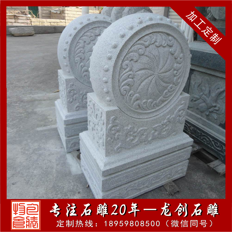 抱鼓石上雕有漩渦狀擬日紋,寓闔家幸福,前程光明之意。