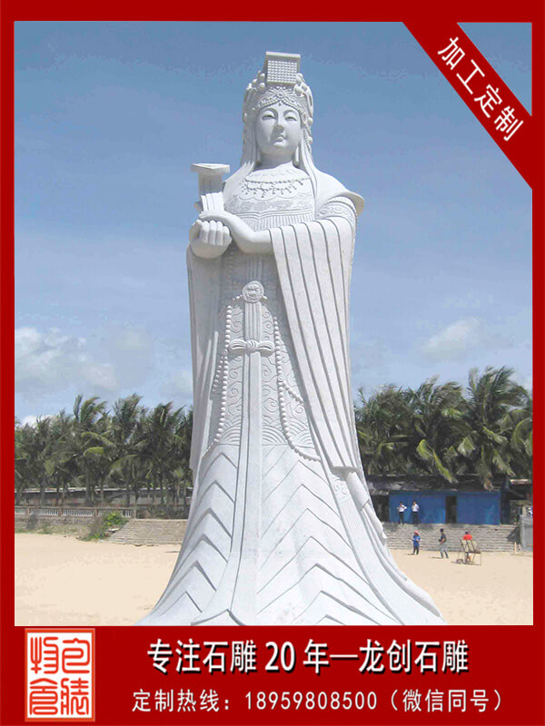 媽祖石雕,以中國東南沿海為中心的海神信仰,又稱天上圣母、天后、天后娘娘、天妃、天妃娘娘、湄洲娘媽等。這一信仰的主體據(jù)說是由真人真事演變而來的??疾鞁屪娴纳降弥?,這一信仰來自民間傳說。首先是傳說,然后是傳說的歷史化和神化,最后形成普遍的媽祖信仰。