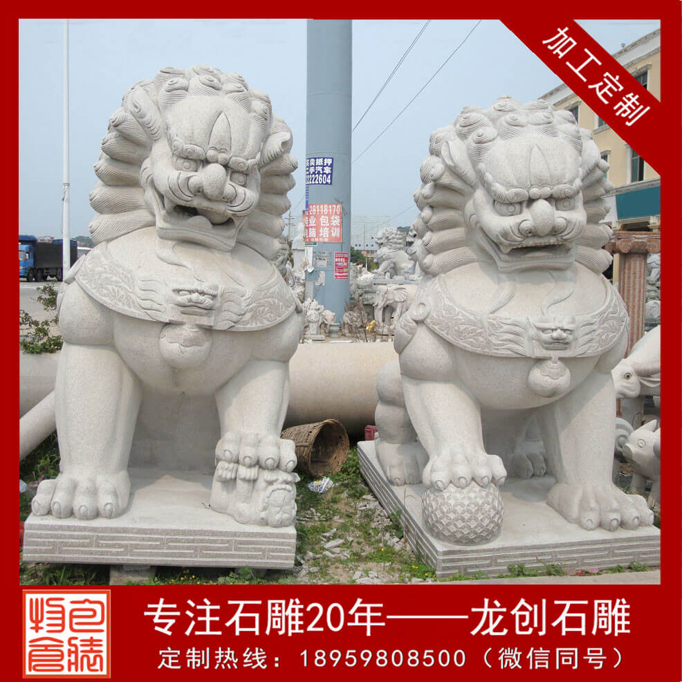石雕獅子是我國(guó)傳統(tǒng)修建中經(jīng)常使用的一種裝飾物。咱們通常會(huì)在寺廟,公司、工廠、商場(chǎng)、銀行、橋梁,府邸,園林等當(dāng)?shù)匾话愣紩?huì)看到石獅。雄偉型的石雕獅子可是更多的時(shí)分,“石獅”是專門指放在大門左右兩邊的一對(duì)獅子。那些看門的石雕獅子的擺放是有必定說法的。