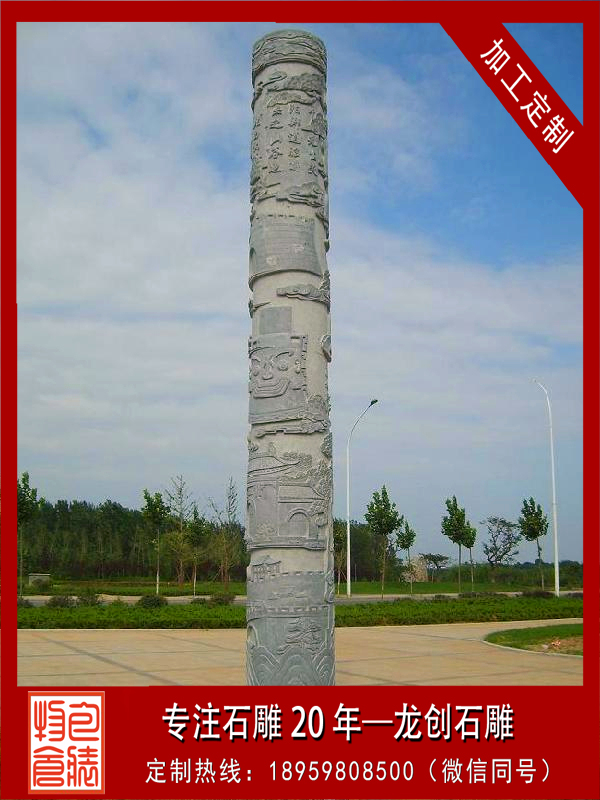 石雕文化柱也被稱(chēng)為石雕圖騰柱或者文化景觀柱以及石頭文化柱等,當(dāng)石雕文化柱以單體形式出現(xiàn)時(shí)一般是作為城市廣場(chǎng)的主雕而放置在廣場(chǎng)的視覺(jué)中心位置,尺度高大醒目,空間領(lǐng)域覆蓋整個(gè)廣場(chǎng)。下面由石雕文化柱廠家-惠安龍創(chuàng)石雕工藝有限公司對(duì)石雕文化柱圖片及文化柱的作用做個(gè)介紹。