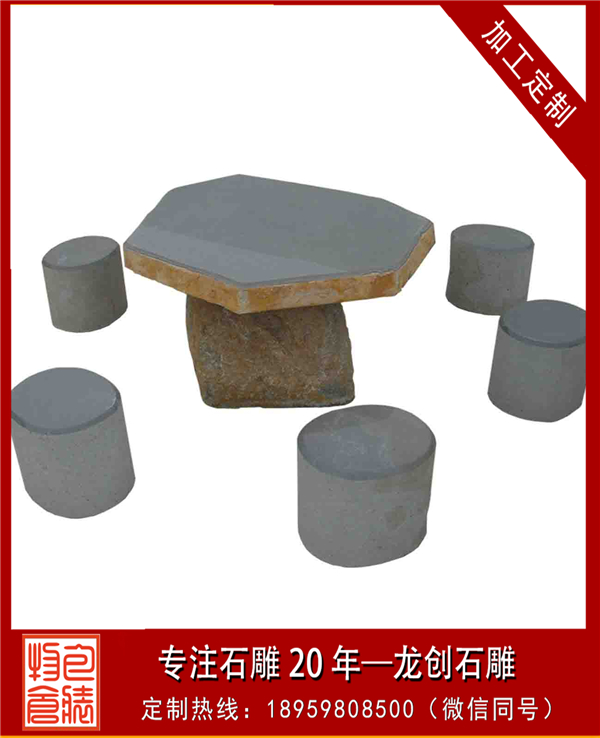 石桌椅是以桌椅為原型,天然石或者人造石為原料制作的休閑設(shè)施。石桌椅因由于用石料制作,故比較沉重,且石桌椅不易損壞,所以常用于室外。例如小區(qū)中庭,別墅、私人住宅庭院,公園,廣場,街道兩邊等地方常放置石桌椅設(shè)施供人休憩。