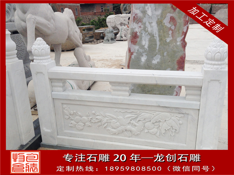 大理石欄桿的制造裝置工藝是祖先留下的寶貴財(cái)富,許多工藝的口訣都是工匠在操作中形成了自己的習(xí)慣,并一代代口傳親授,薪火相傳。大理石欄桿具有很強(qiáng)的表現(xiàn)力,可雕刻出各種古典式樣的圖畫(huà)。有著時(shí)尚、美觀、環(huán)保、抗老化、不變形的性能長(zhǎng)處,可廣泛用于市政、水利、公園、交通橋梁等護(hù)欄工程。