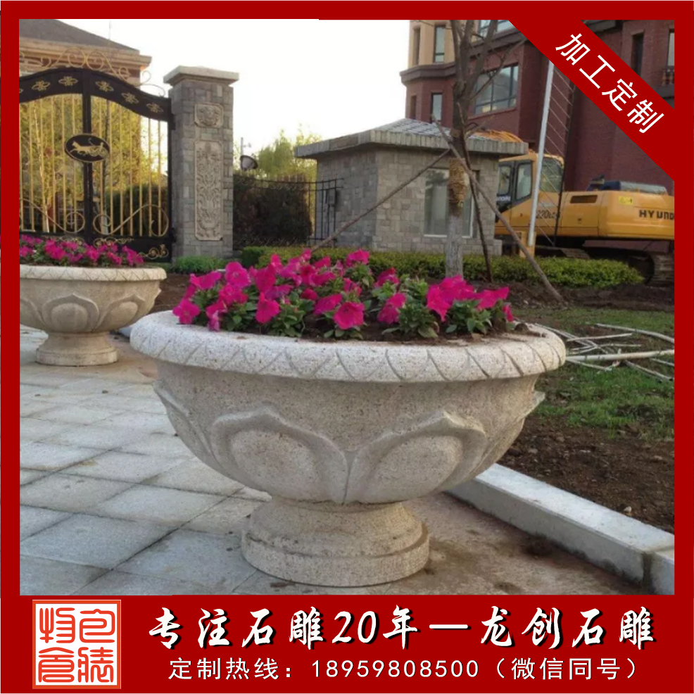 石雕花缽、石材花缽是通過(guò)石材雕刻制作而成的花盆雕塑作品,一般以砂巖、青石、花崗巖、大理石為材質(zhì),造型上大都以浮雕畫(huà)進(jìn)行盆壁的裝飾修飾。石材花缽既有花盆的實(shí)用性,又有很好的裝飾性,且質(zhì)地堅(jiān)硬致密、強(qiáng)度高、抗風(fēng)化、耐腐蝕、耐磨損、吸水性低,顏色美觀,格調(diào)高雅,保養(yǎng)方便簡(jiǎn)單,使用壽命長(zhǎng)。以下介紹幾款常見(jiàn)石材花缽種類