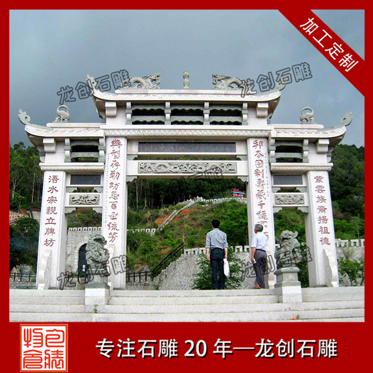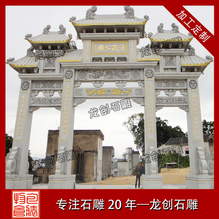 石雕牌樓的材質有很多,青石、花崗巖、漢白玉都可以制作石牌樓,材質不一樣,石牌樓價格也不一樣,其中價格最貴的是漢白玉石雕牌樓,由于漢白玉石材資源稀缺,開采量少,因此價格高,漢白玉石牌樓定制選惠安龍創(chuàng)石雕,雕刻工藝精湛,產品質量上乘,源頭廠家,價位合理。支持來圖來樣定制,龍創(chuàng)石雕專業(yè)為您服務,歡迎咨詢考察。
