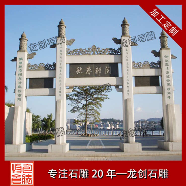 關(guān)于修建一座石牌坊要多少錢?什么價(jià)格都有,價(jià)格七八萬的有單門牌坊,十來萬的有一般的村口石牌樓,還有三十多萬的豪華石牌樓,石頭牌坊報(bào)價(jià)主要和圖片樣式、尺寸大小、石材、雕刻工藝有主要關(guān)系。
