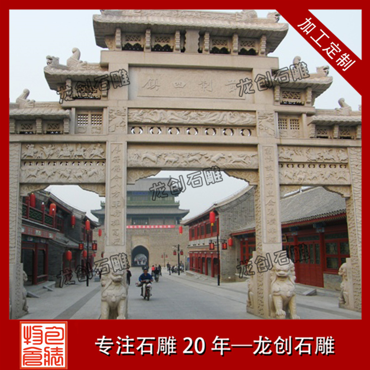 石雕牌樓作為中國(guó)有文化內(nèi)涵的古建筑之一,建在景區(qū)入口、寺廟入口、村莊入口居多,是一道值得欣賞的亮麗風(fēng)景線,石雕牌樓生產(chǎn)廠家,龍創(chuàng)石雕,生產(chǎn)各種樣式尺寸的石牌樓,質(zhì)優(yōu)價(jià)廉,歡迎直接來(lái)電咨詢選購(gòu)。