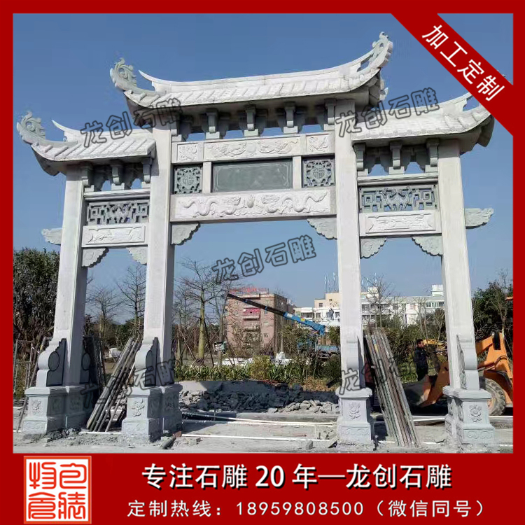 龍創(chuàng)石雕,專業(yè)的青石牌坊制作廠家,現(xiàn)有出售青石三門(mén)三樓、青石三門(mén)五樓、三門(mén)七樓等樣式的石牌坊,同是也承接來(lái)圖來(lái)樣定制,歡迎來(lái)電咨詢。